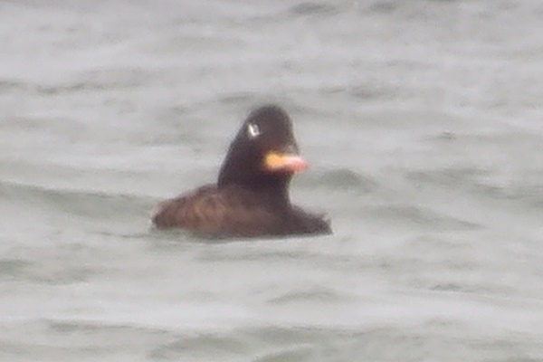 Han. Foran den en amerikansk sortand han. Lagt på 2. april 2017, taget 31. marts 2017 ved Enebærodde ved udmundingen af Odense Fjord i Kattegat.