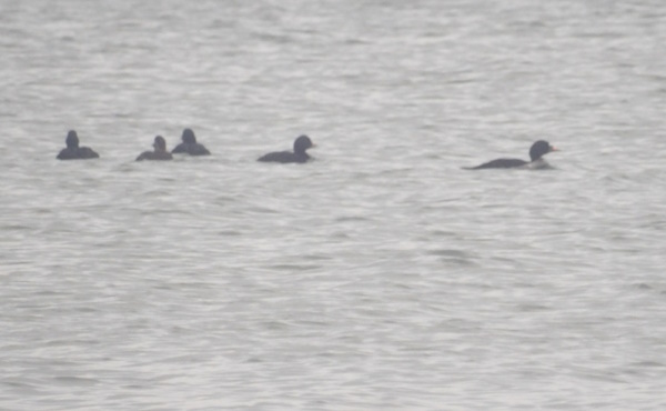 Til højre en han. Ellers sortænder. Lagt på 15. december 2025, taget 15. december 2025 på Enebærodde i udmundingen af Odense Fjord i Kattegat.