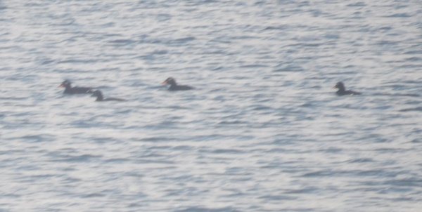 Dem med hvidt vingebånd, de andre er sortænder. Lagt på 11. december 2018, taget 11. december 2018 på Flyvesandet på Fyns Kattegatkyst.