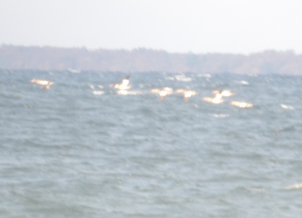 De 3 hvide fugle. Ellers grågæs og canadagæs. Lagt på 29. august 2025, taget 29. august 2025 på Sybergland ved Kerteminde på Nordøstfyn.
