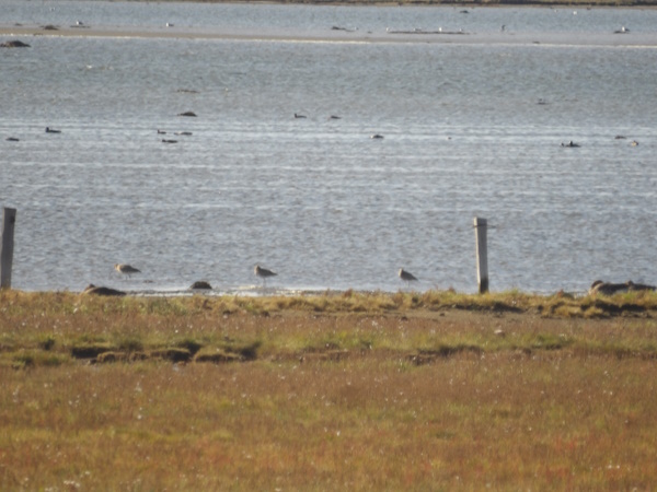 Nederst til højre. Ellers store regnspover, gråænder og sølvmåger. Lagt på 26. september 2025, taget 26. september 2025 på Enebærodde i udmundingen af Odense Fjord i Kattegat.