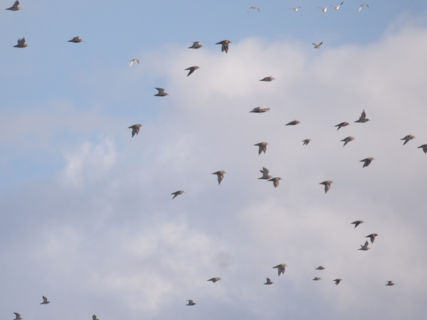 De meget hvide fugle især øverst. Lagt på 14. september 2025, taget 14. september 2025 på Kystlagunen på Gyldensteen Strand 4 kilomewter øst for Bogense på Fyns Kattegatkyst.