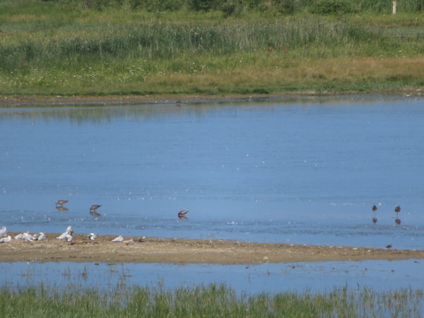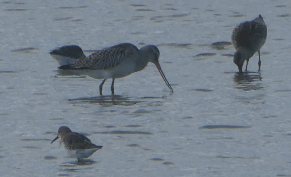 Samme som før forstørret. Til venstre for to lille kobbersnepper. Lagt på 5. august 2017, taget 5. august 2017 på Firtalsstrand ved Odense Fjord.