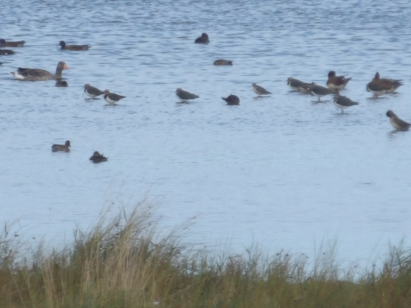 Midt i billedet. Ellers grågæs. viber, pibeænder og krikand. Lagt på 17. september 2025, taget 17. september 2025 på Firtalstranden ud til Odense Fjord.