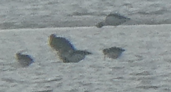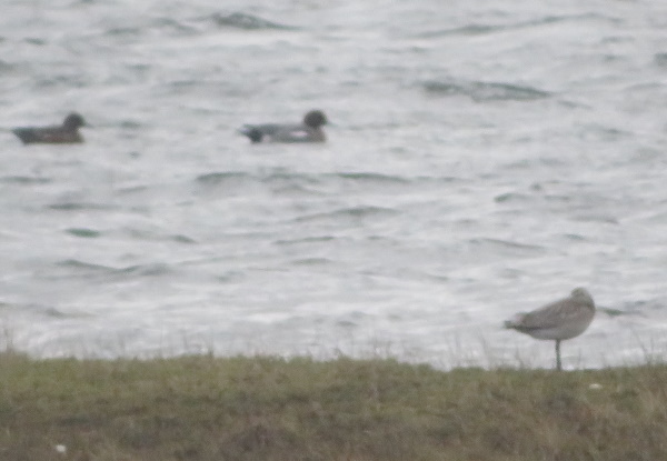 Den fra før forstørret. Nederst til højre. Ellers 2 gravænder, islandsk ryle og stor regnspove. Lagt på 24. januar 2021, taget 23. januar 2021 på Flyvesandet på Nordfyns kyst.