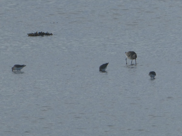 Yderst til højre. Ellers 1 lille kobbersneppe og 2 almindelige ryler. Lagt på 13. oktober 2020, taget 13. oktober 2020 på Flyvesandet på Nordfyns kyst.