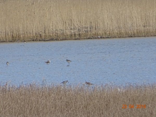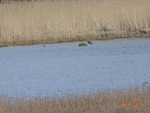 Nederst til højre. Ellers dobbeltbekkasin og strandskade. Lagt på 24. april 2016, taget 23. april 2016 ved Egensedybet ved Enebærodde i udløbet af Odense Fjord.
