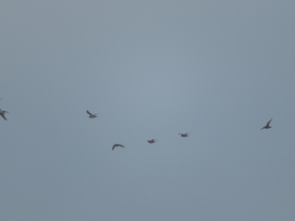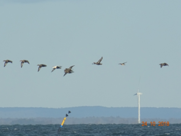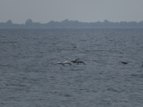 Bag flyvende ederfugle. Lagt på 26. september 2021, taget 26. september 2021 på Flyvesandet på Fyns Kattegatkyst.