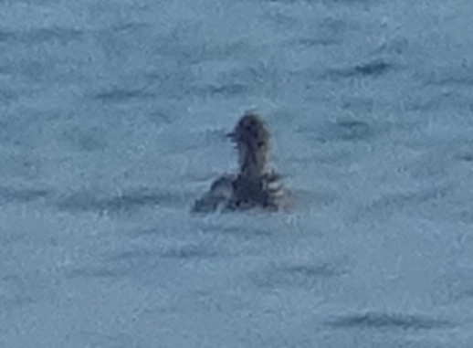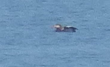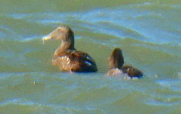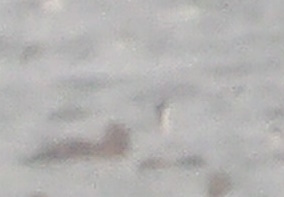 Den fra før og ederfuglehunnen forstørret. Til højre. Lagt på 11. november 2025, taget 11. november 2025 på Horseklint Strand på Fynshoved.