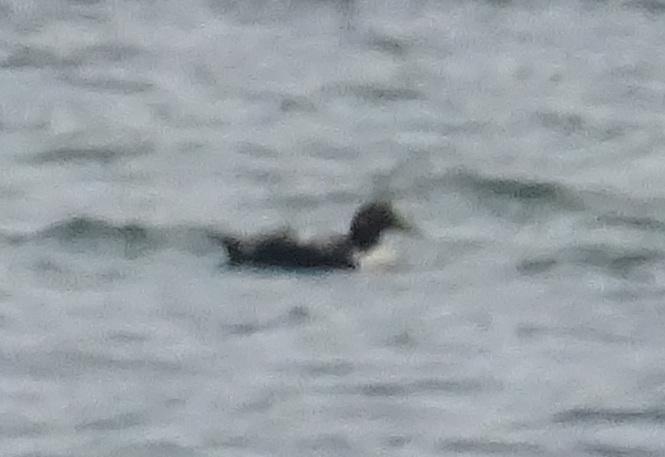 Mellem skarver ude til venstre. Ud over skarver og lomvien er der en fiskehejre, en nathejre, en lunde og en stormmåge. Lagt på 16. juni 2018, taget 16. juni 2018 på Fynshoved.