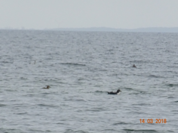3 lomvier. Lagt på 16. marts 2018, taget 14. marts 2018 på Flyvesandet på Fyns Kattegatkyst.