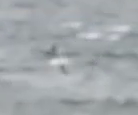 De 5 lomvier fra før forstørret. Lagt på 5. juni 2016, taget 3. juni 2016 på Flyvesandet ud til Kattegat.